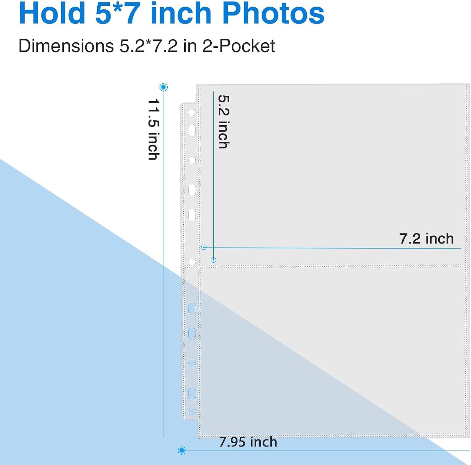 【30 Pack !】11.5 x 7.95″ Sheets with 11-hole punched fit for different kinds of ring binders or albums. The 7.2''x 5.2 Pockets Perfect for 5''x 7 or smaller photos or cards, 2 pockets per page, up to 4 photos with 2 inserted back-to-back or 2 double-sided, totally can hold up to 120 photos or cards.