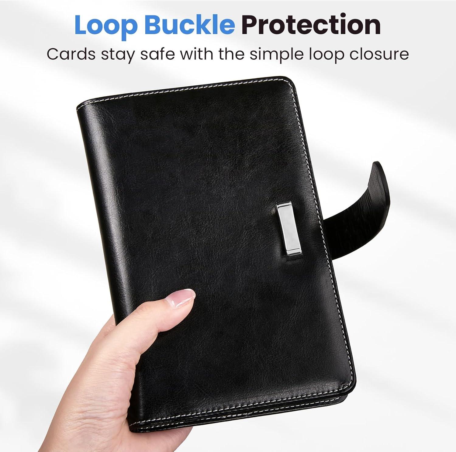 Secure Loop Buckle Closure: The sturdy loop buckle ensures your cards are held firmly in place, offering reliable protection against loss and damage. Perfectly organizes business cards, credit cards, gift cards, debit cards—all in one sleek holder.