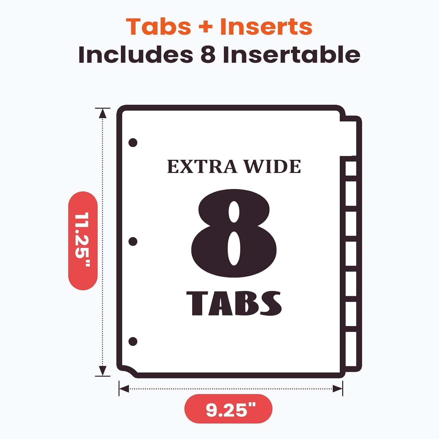 2 Pockets: 2-pocket design provides extra storage for 8.5”x 11”papers. Our binder dividers help keep your documents safe, preventing dirt, tears, or loss. Perfect for you looking to organize and protect your important files efficiently.