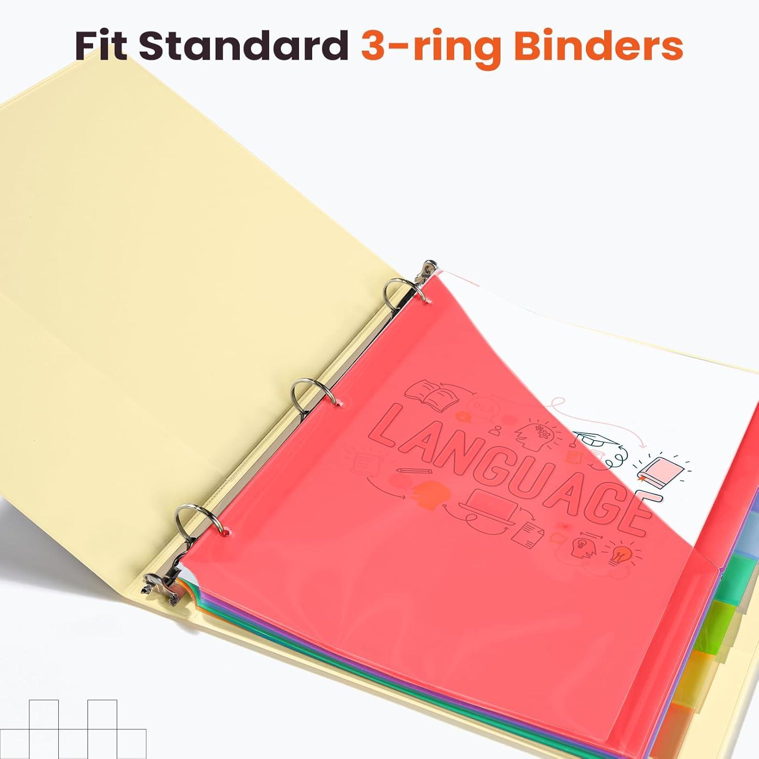 Easier Organization: Our binder dividers with tabs fit for standard 3 ring binders. Dividers for 3 ring binder help you keep documents neatly organized with pockets and easy to locate them with multi-colorful tabs.