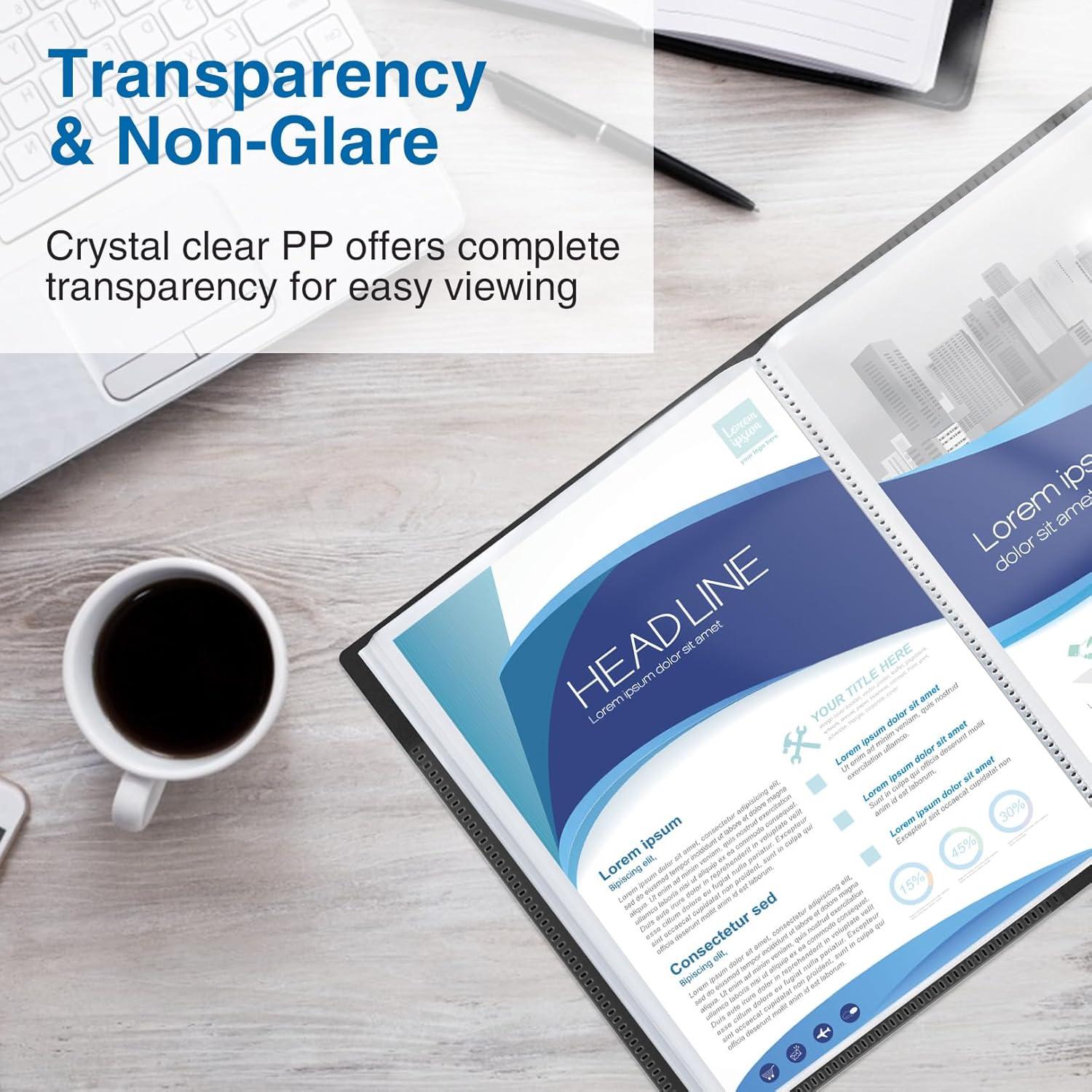 High Transparency & Lies Flat When Open: Our presentation book with crystal clear PP sheet protectors offers complete transparency for checking through and organizing. Bound sheet protector lies flat when open, free your hands.