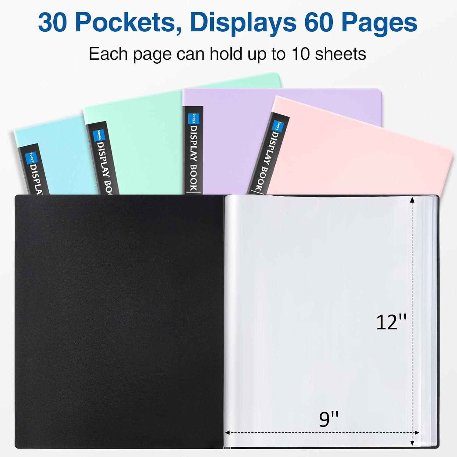 Sooez Binder with Plastic Sleeves 30-Pocket, Displays 60 Pages, 9×12 Presentation Folders with Clear Sheet Protectors, Art Portfolio with 30 Black Paper for Certificate & Office Project(Black)