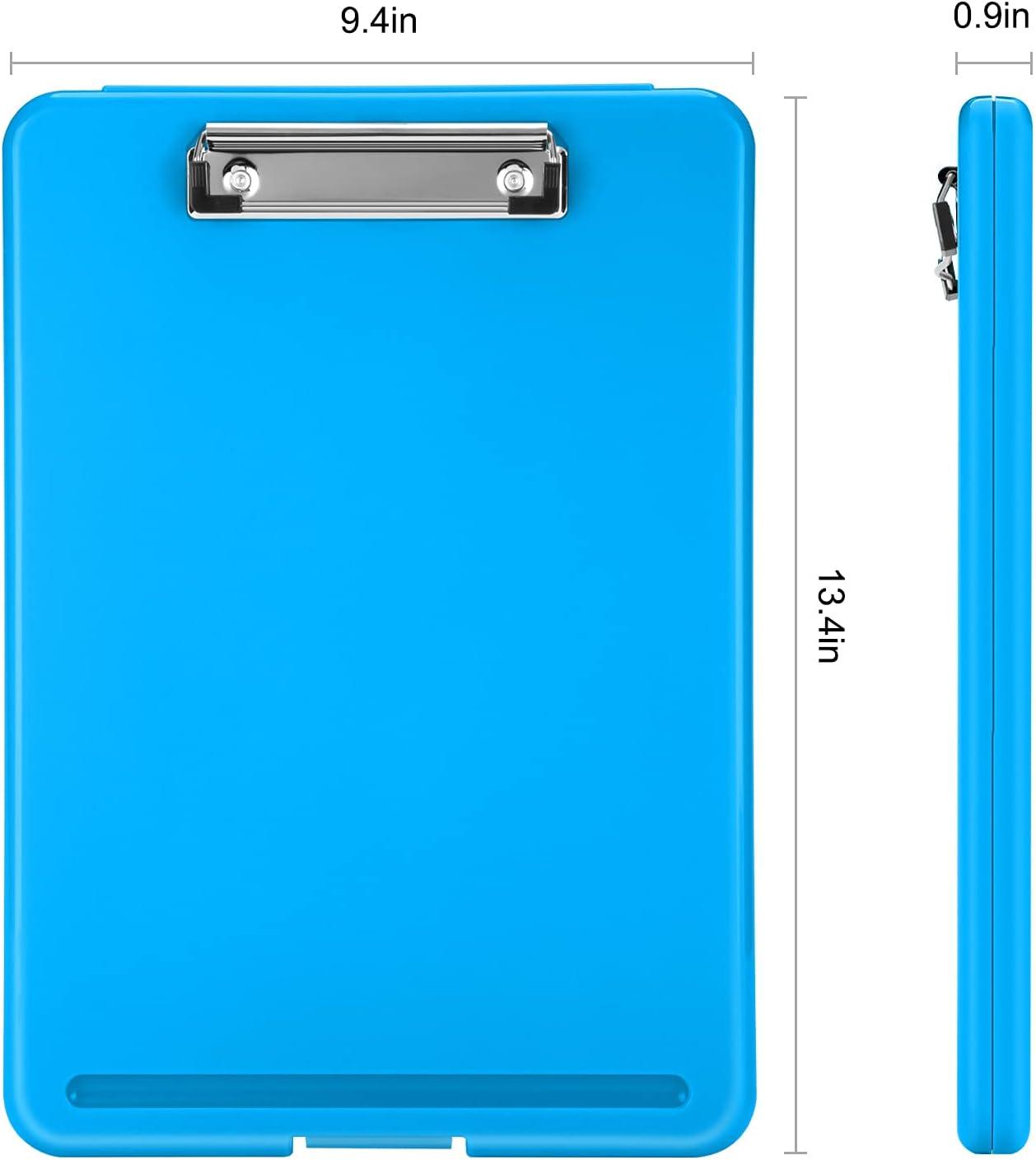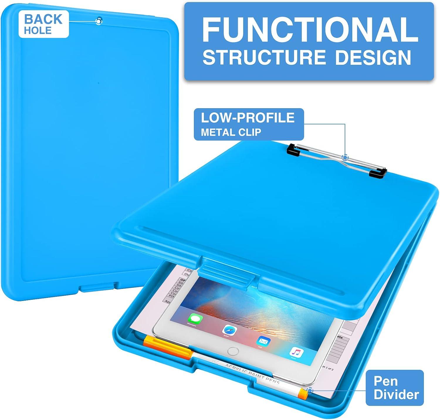 Sooez Clipboard with Storage, Plastic Storage Clipboard with Low Profile Clip, Heavy Duty Nursing Clipboards Foldable, Coaches Clip Board for Work Kids, Teacher Must Haves, Office School Supplies(A-blue)