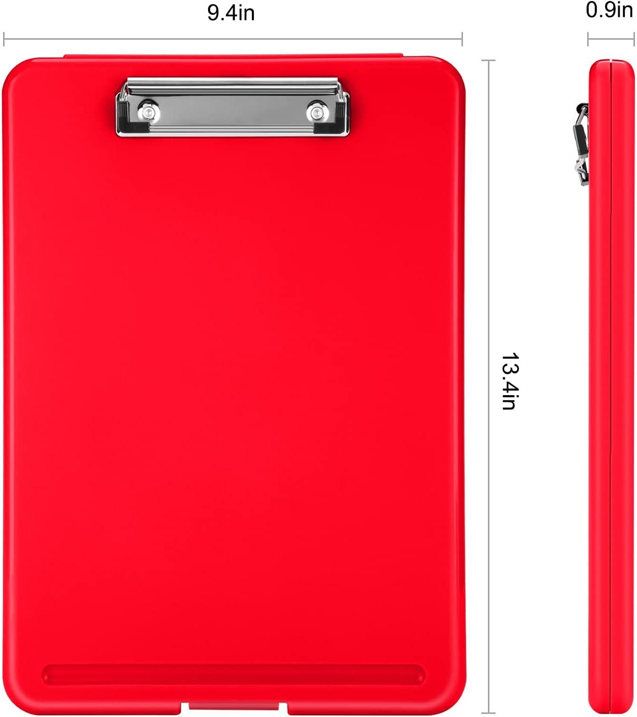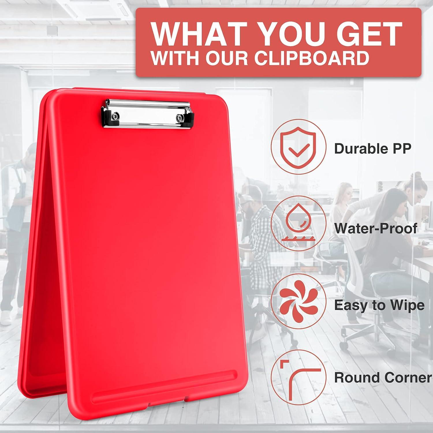 Sooez Clipboard with Storage, Plastic Storage Clipboard with Low Profile Clip, Heavy Duty Nursing Clipboards Foldable, Coaches Clip Board for Work Kids, Teacher Must Haves, Office School Supplies(A-red)