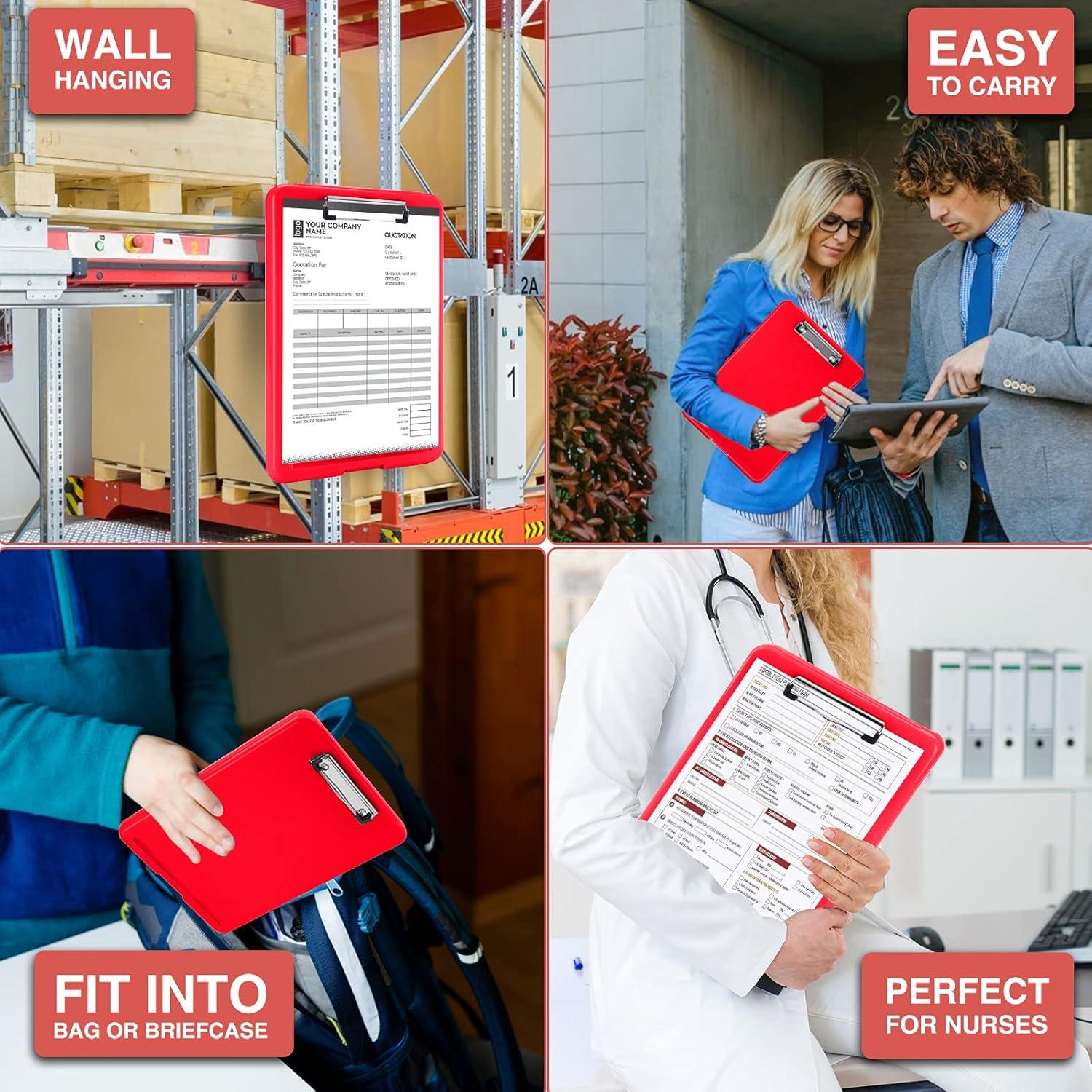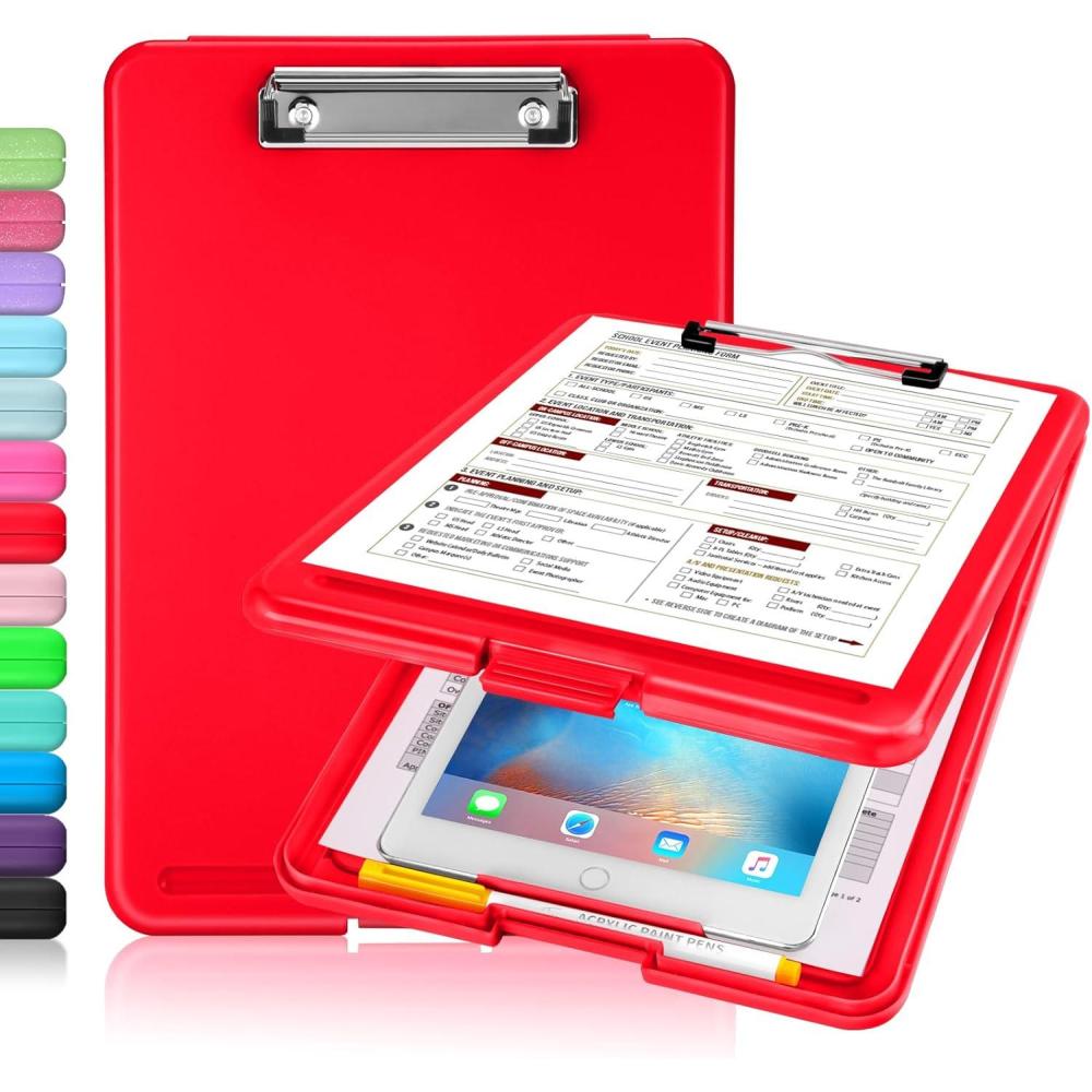 imageSooez Clipboard with Storage Plastic Storage Clipboard with Low Profile Clip Heavy Duty Nursing Clipboards Foldable Coaches Clip Board for Work Kids Teacher Must Haves Office School SuppliesAred